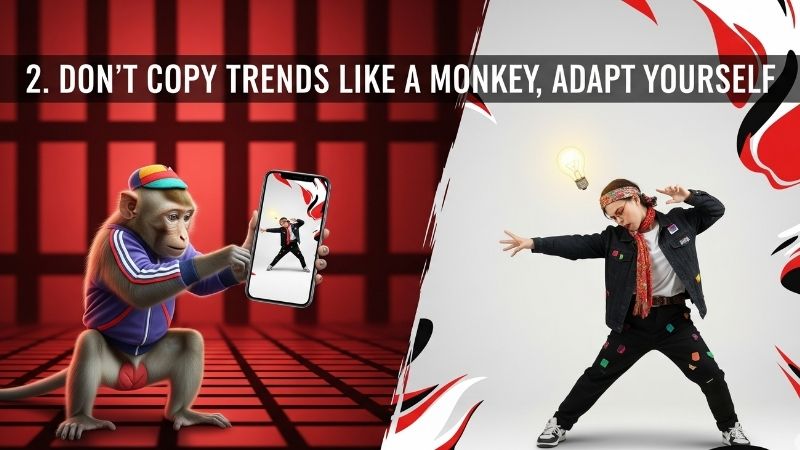 Being different is always one step ahead, remember. Take that popular sound, but add your own humor to it, add your own knowledge. Then people will see you not just as an imitator, but as a creator, and they'll start following you.